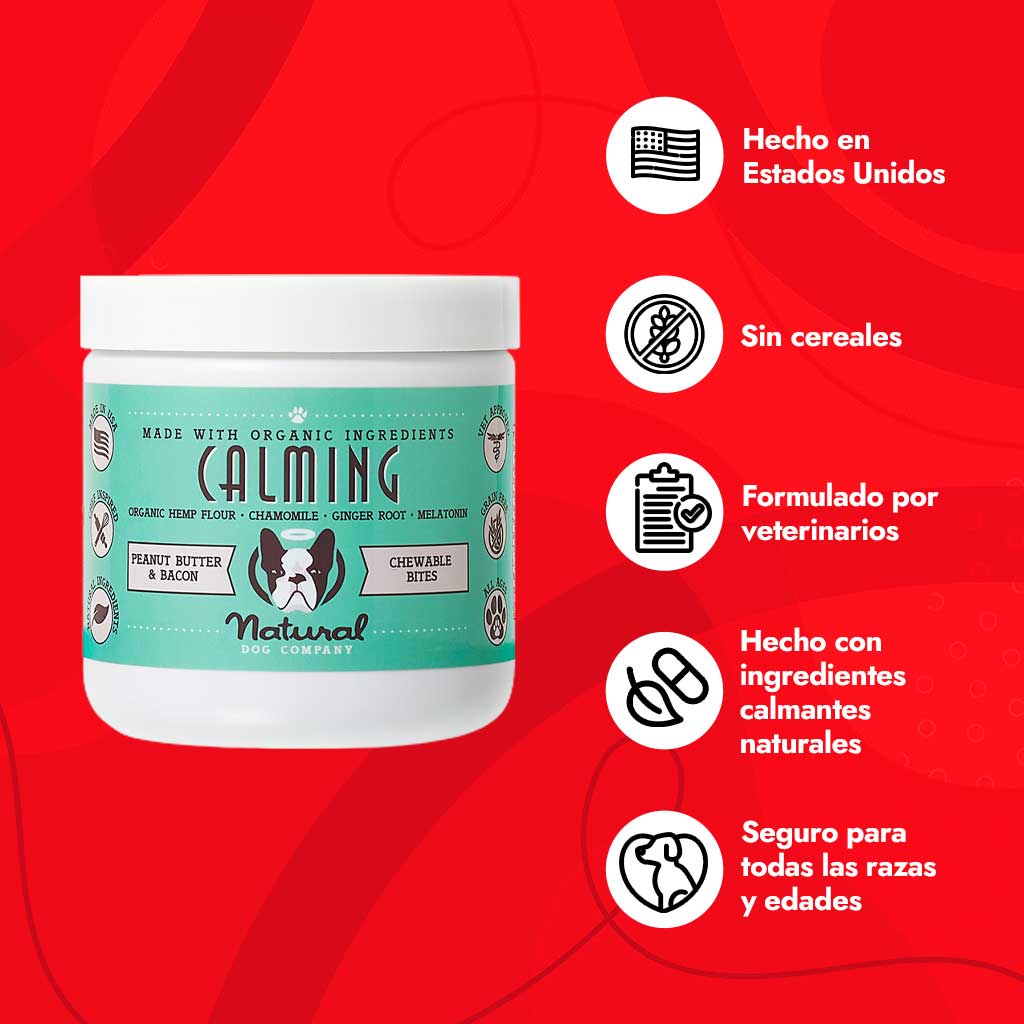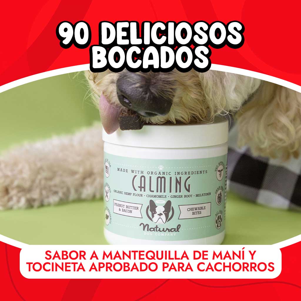 Este calmante natural para perros está formulado específicamente para aliviar el estrés y ansiedad que tu perro pueda sufrir. Funcionan mejor cuando se administran a diario en la dosis recomendada, pero también puede administrar una dosis normal justo antes de una situación estresante para ayudar a tu perro a mantener la calma.